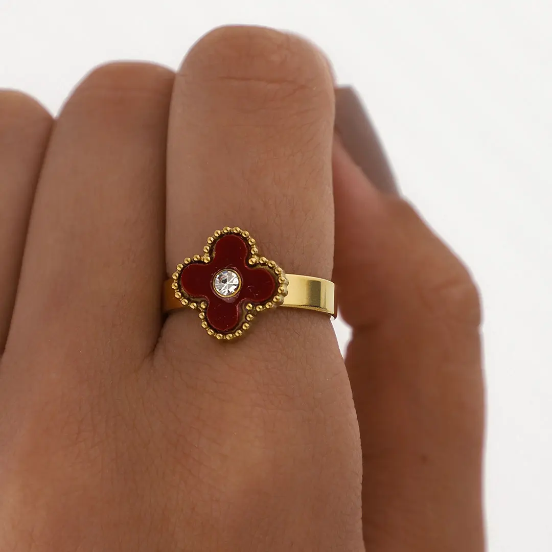ANILLO TREBOL ACERO DORADO