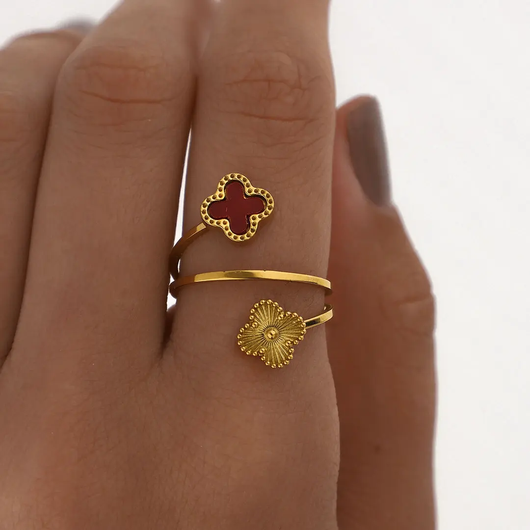 ANILLO TREBOL ACERO DORADO
