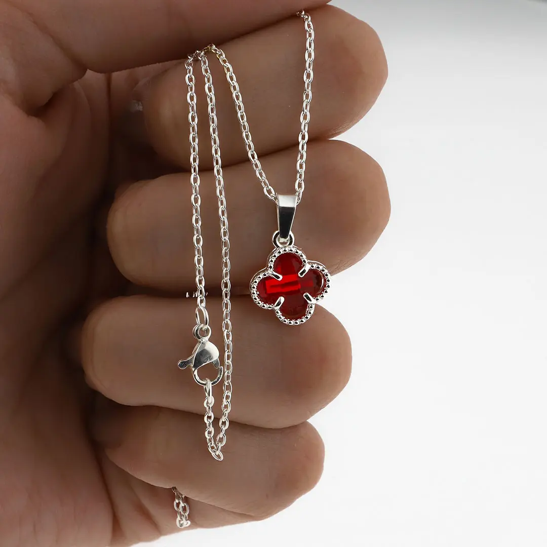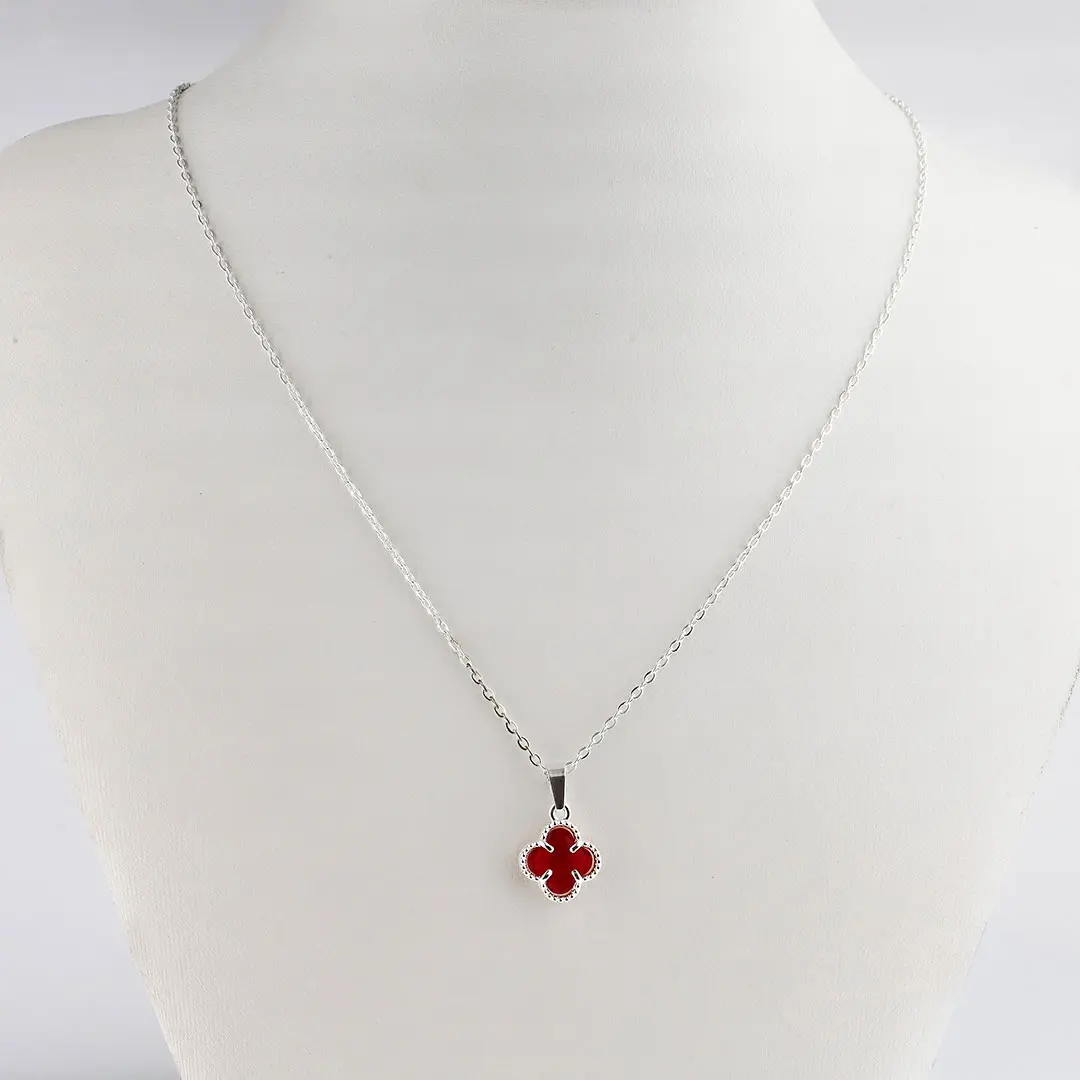 COLGANTE TREBOL ROJO ACERO BLANCO
