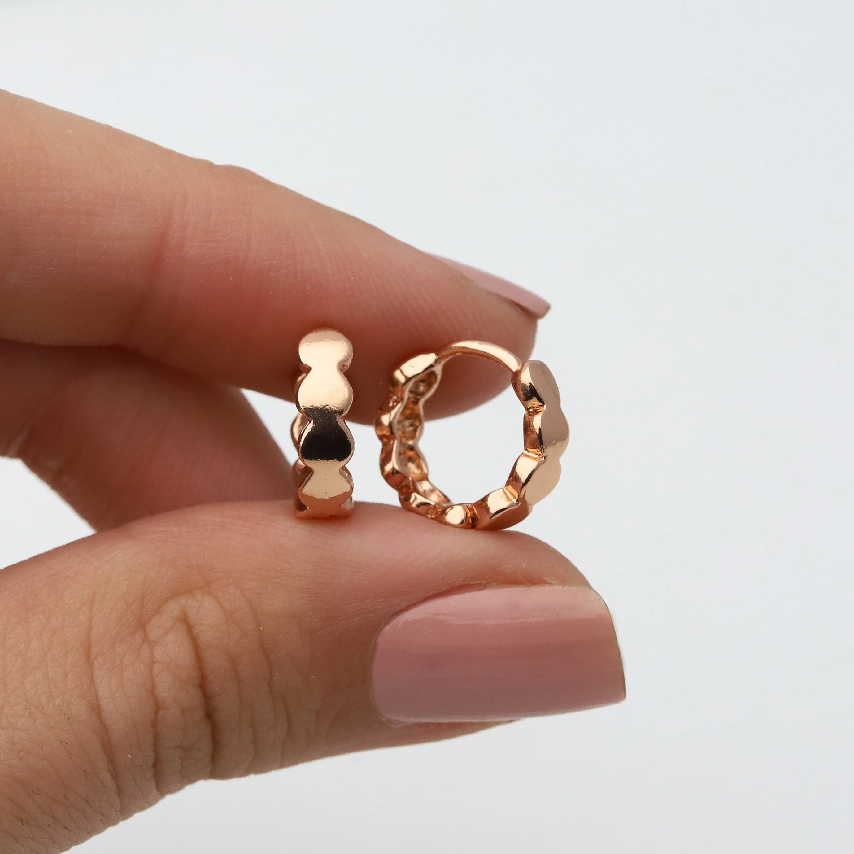 Con cierres seguros y cómodos, estos aros son perfectos para lucir durante todo el día o para eventos especiales. El revestimiento de oro rosé está diseñado para resistir el paso del tiempo, asegurando que puedas disfrutar de su esplendor durante mucho tiempo.